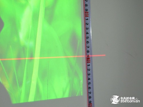 红色为参考线,上图显示画面高度为78厘米,画面向下位移尺寸为6厘米,实测明基W1500可最大支持约11%垂直镜头位移。