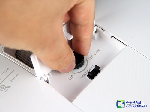 明基W1500镜头位移旋钮,隐藏在镜头变焦环后方,贴心的镜头位移功能,可修复安装投影机时所产生的细微偏差,只需调整镜头后侧的旋钮,便可让画面在110%-130%的范围内上下移动。