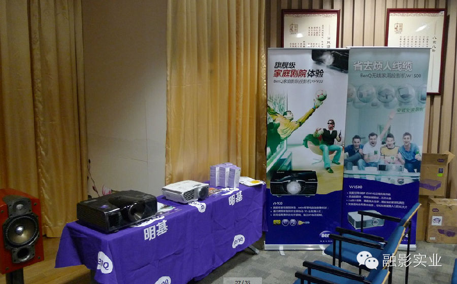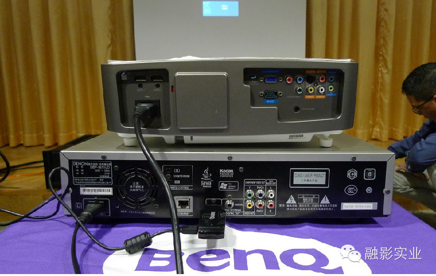 本次演讲会现场演示的投影机是明基W1500,同时采用无线传输技术提供演讲时所需要的素材及演示。